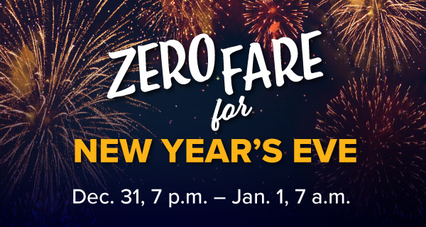All RTD bus and rail routes – as well as Access-a-Ride and FlexRide services – will be provided at no cost to customers from 7 p.m., Dec. 31, through 7 a.m. Thursday, Jan. 1.