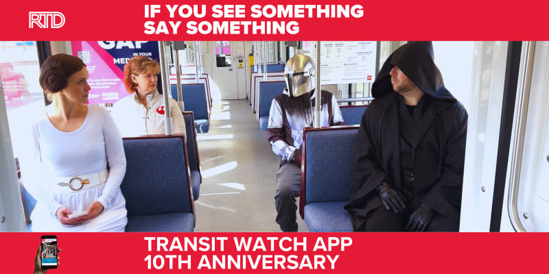 Ahead of the May the Fourth be with You weekend, read about RTD launching the Transit Watch app May 7, 2014. The app enables customers to be partners in safety and report suspicious or unsafe activity.