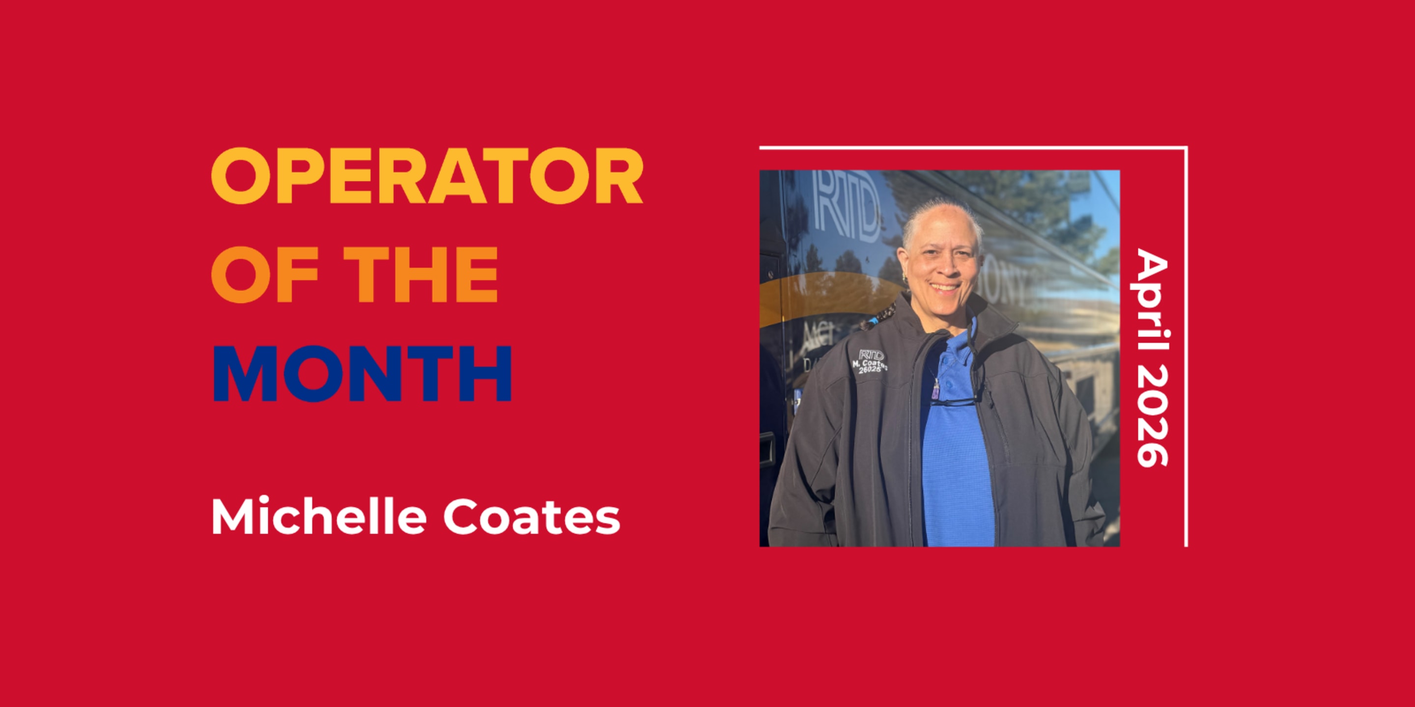April’s Operator of the Month is Michelle Coates from Boulder Division! Coates was chosen for her positive attitude and professionalism that create a lasting impression on her customers and colleagues alike. One such example involved a customer whose car broke down, requiring a wait at a bus stop that is not as visible as their usual stop. Despite this, Coates still managed to see the customer waiting at the stop and pulled over to allow the individual to board, which made the customer’s rough day better.