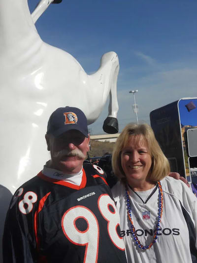 Wheeler, pictured on the right in the above photo with her husband, first became a Broncos fan as a teenager being introduced to the sport.