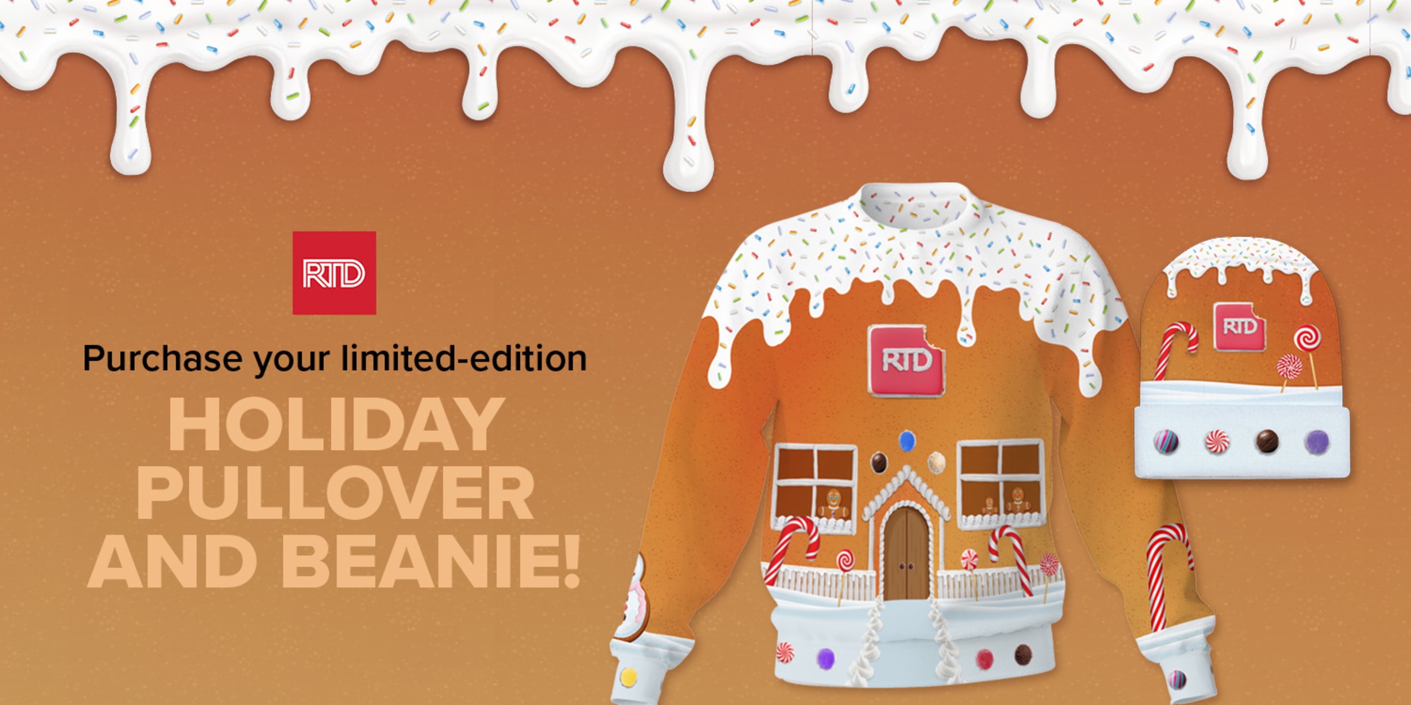 RTD-themed winter apparel is available for customers to purchase directly via RTD’s website. The beanie is available for $10, and the pullover ranges from $55 to $63 depending on size. Due to production timelines, RTD encourages customers to place orders by Dec. 1, and all apparel will ship no later than Dec. 15.