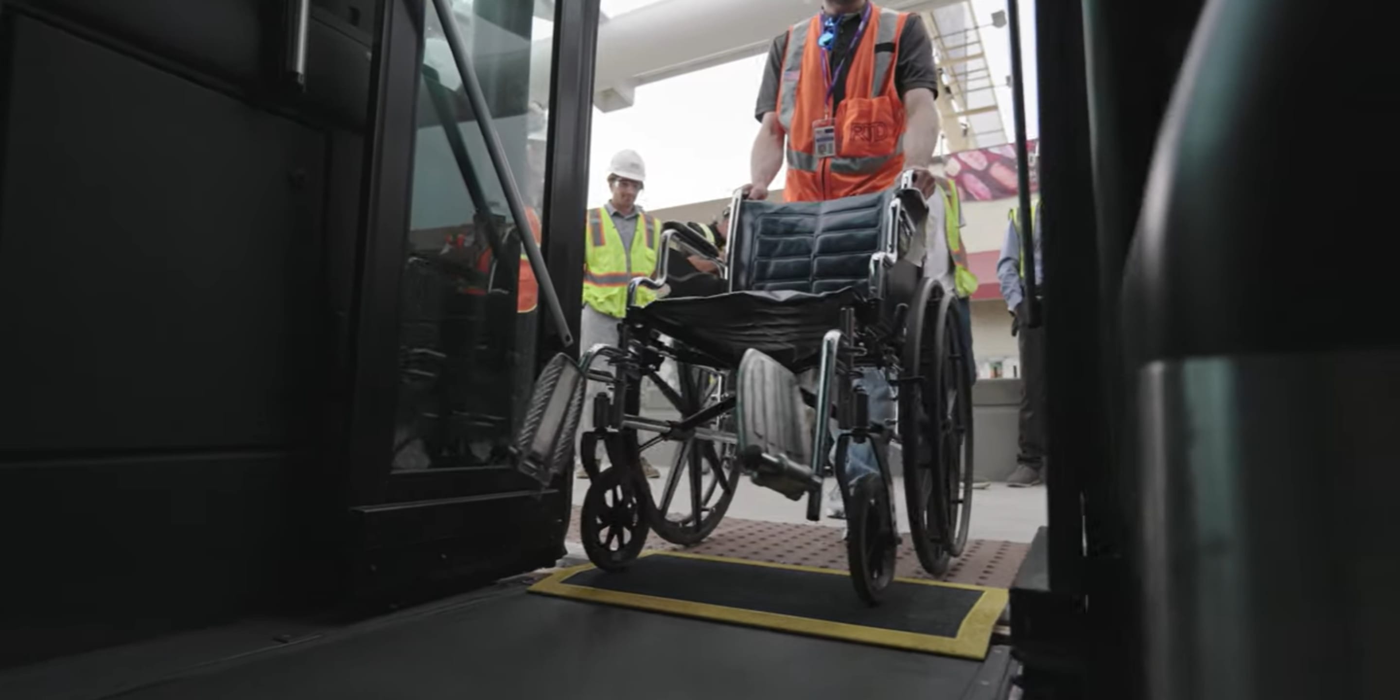 These solutions work alongside permanent design features such as tactile paving for the blind, auditory crosswalk signals, protected pedestrian crossings and shelters wide enough to accommodate a wheelchair. Considerations like making sure a person using a wheelchair’s path of travel is not only accessible, but also intuitive, can make a significant difference.