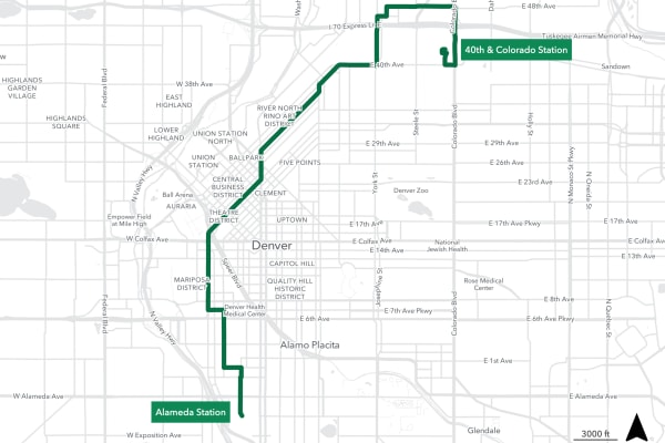 - The Art District Connector is a new route that combines the eastern segments of routes 1 and 44 to connect the Baker and Five Points neighborhoods between the Alameda and 40th and Colorado rail stations. Route alignment and frequency on the western segments of routes 1 and 44 remain the same.