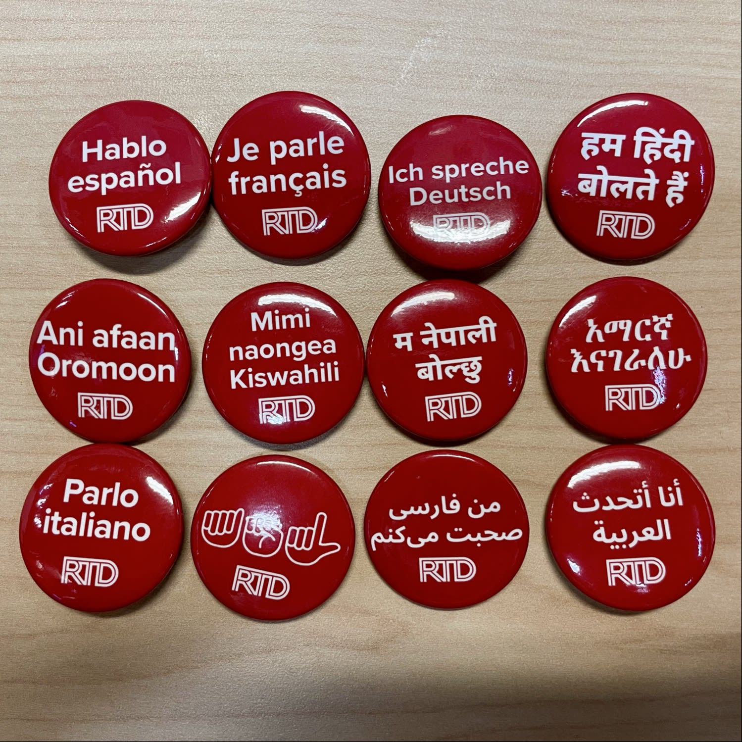 RTD is distributing 1,500 buttons in Spanish, Amharic, French, Arabic, Oromo, Swahili, Italian, Nepali, German, Hindi, Farsi, and American Sign Language. Employees can volunteer to wear them on their shirt, hat, lanyard, or other visible item, in accordance with uniform standards.