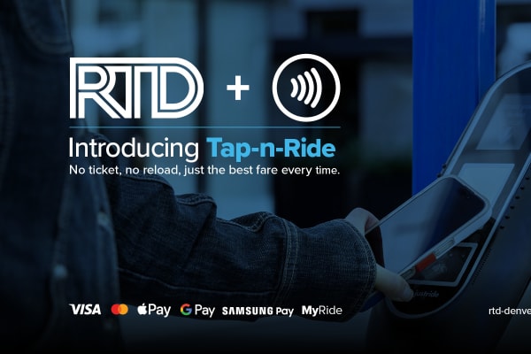 DENVER (Nov. 25, 2025) –– The Regional Transportation District (RTD) is introducing Tap-n-Ride, a new fare payment option that provides a quick, secure, and convenient way for customers to pay their fare at any validator. Customers simply need to tap a Visa or Mastercard credit, debit, or prepaid card – or use a Visa or Mastercard loaded into a mobile wallet– directly on a bus or rail validator and ride. Mobile wallet payment options include Apple Pay, Google Pay, and Samsung Pay, and are available in a mobile phone or smart watch. RTD plans to add American Express and Discover card options to its Tap-n-Ride program in early 2026.