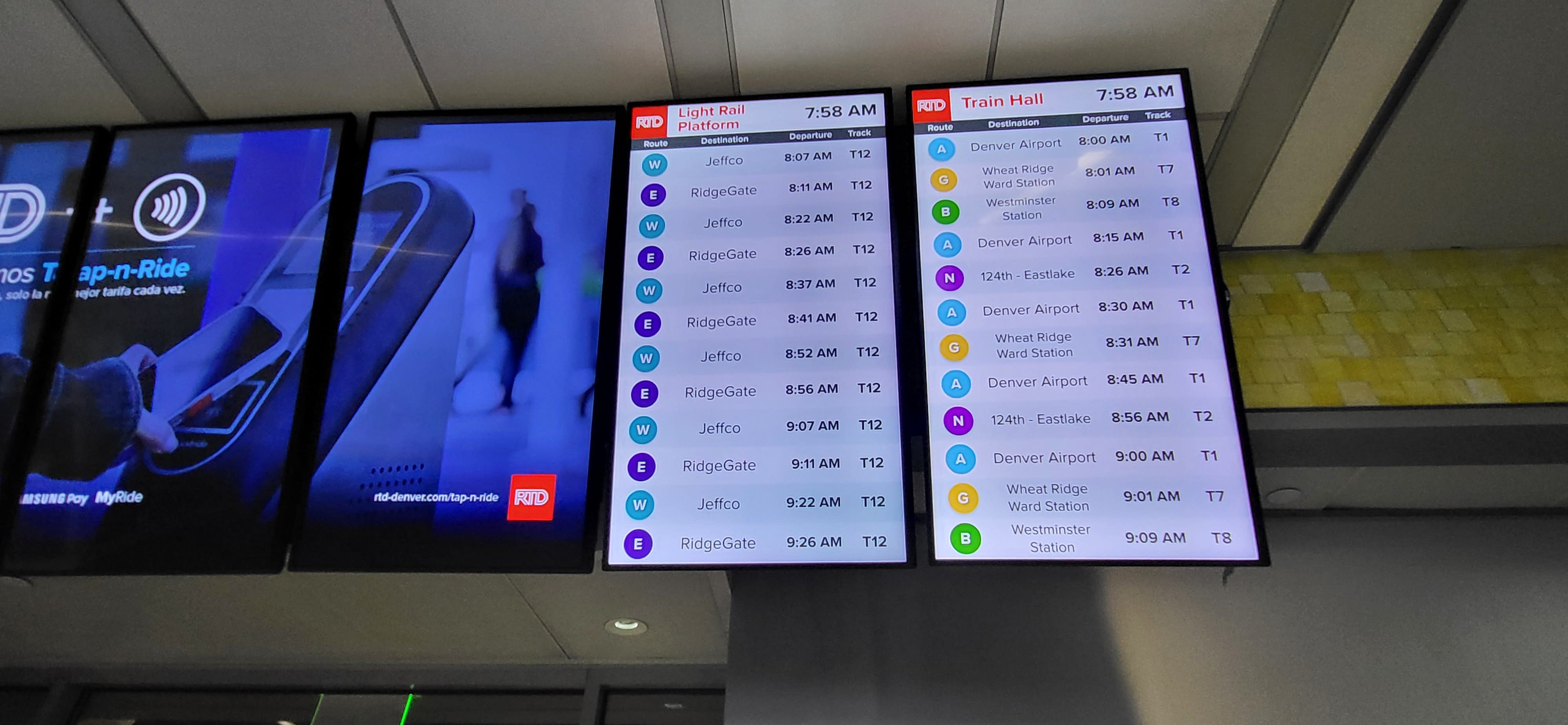 Les affichages mis à jour reflètent également les efforts plus larges de la RTD pour moderniser l'infrastructure des transports en commun et intégrer la technologie qui soutient la fréquentation et l'évolution des besoins des clients, tels que paiement des billets sans contact via Tap-n-Ride et heures de relations numériques élargies avec la clientèle. Tous les écrans du système RTD devraient être entièrement migrés d'ici à la fin du mois de mai, et d'autres améliorations des écrans, telles que de nouveaux contenus et une intégration plus poussée des données, sont à l'étude.