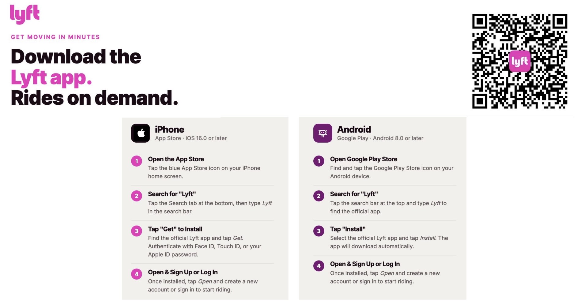 - Télécharger l'application Lyft (App Store ou Google Play)