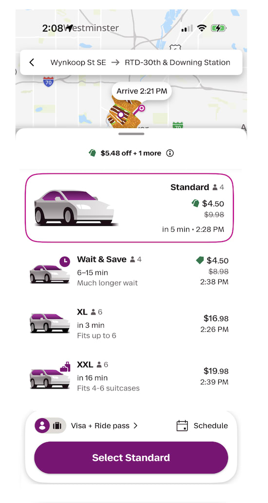 - Examiner les options de transport (Standard, Wait & Save, XL, etc.)