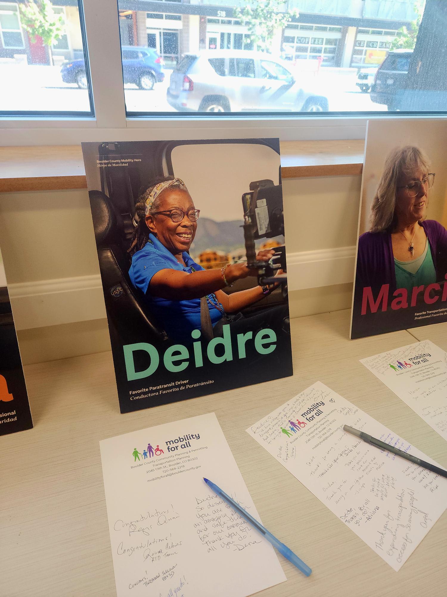 Каждый день в районе Денвера Дидре Леггерт делает гораздо больше, чем просто перевозит клиентов. За рулем своего автомобиля Access-a-Ride она - надежная рука, приветливое лицо, а во многих случаях - первое человеческое общение в день, когда ее клиенты едут на работу, к врачу или к семье. Ее сострадание и надежность заслужили восхищение клиентов, а теперь и звание "Любимый водитель паратранзита" и признание в качестве героя мобильности в рамках программы Mobility for All от Boulder County Mobility and Access Coalition и Mobility for All Program.