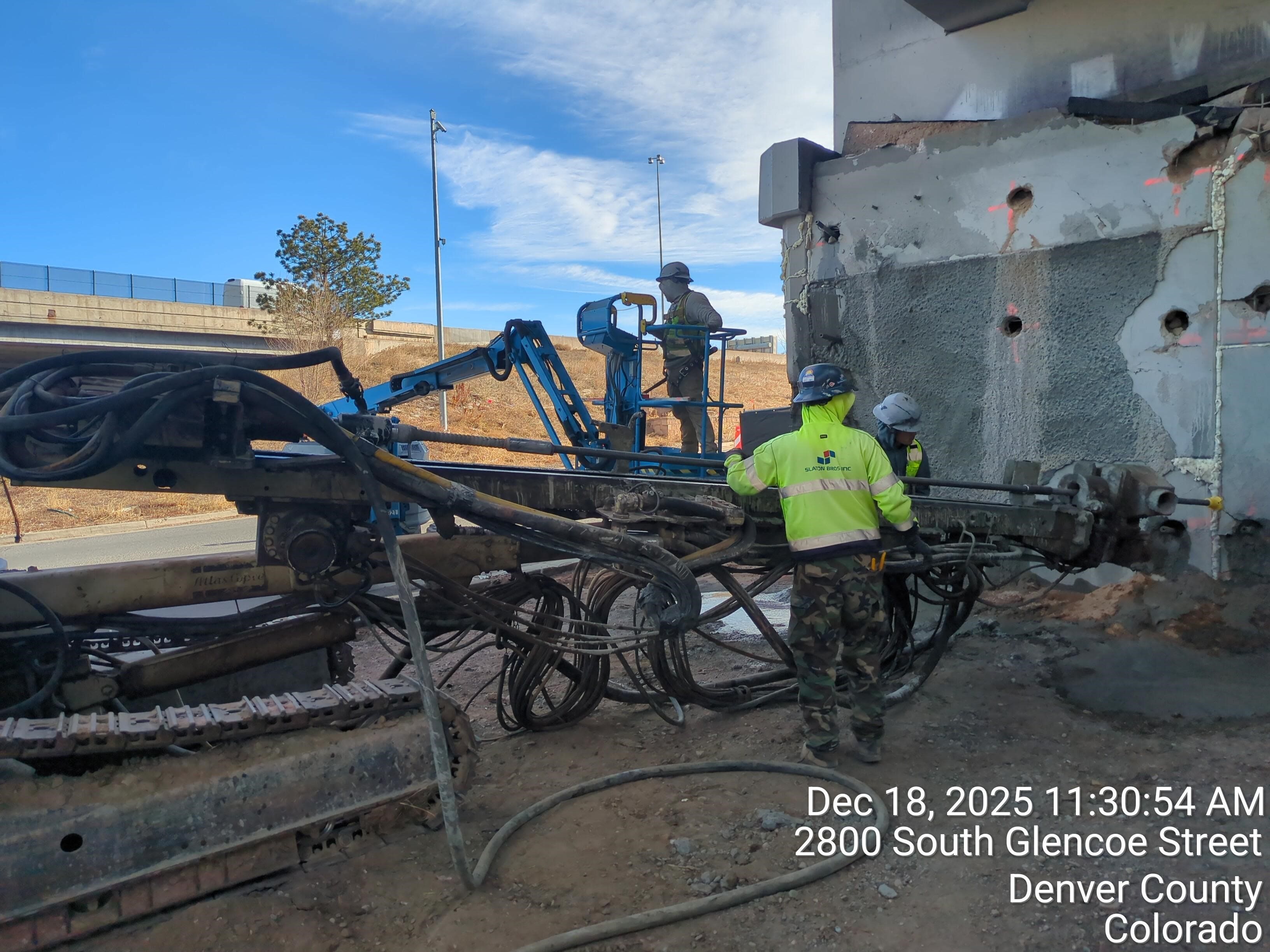 - Crews installed and grouted 18 soil nails to stabilize the abutment wall.