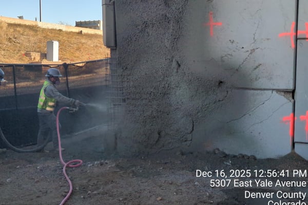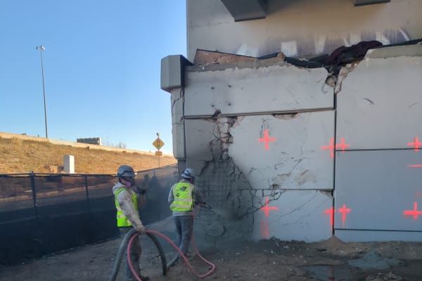 - Crews installed wire mesh and shotcrete to shore up the abutment walls prior to soil nail installation.