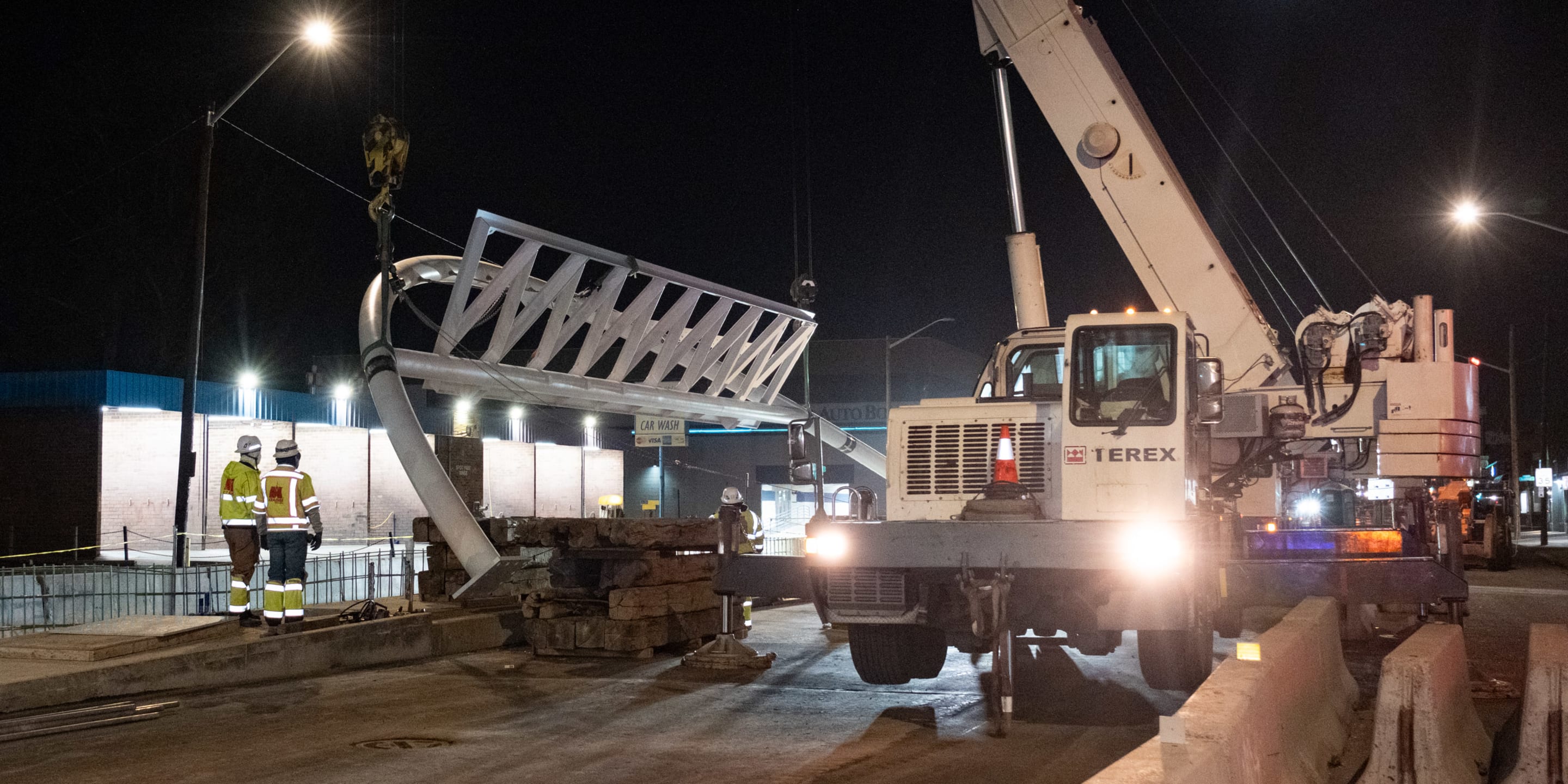 文化与起重机:在魁北克街举行拱门吊装观赏派对,庆祝快速公交系统的进展